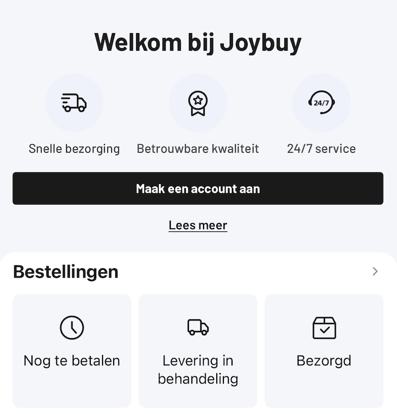 1. Registreer een account op onze website: Don't just buy, Joybuy!