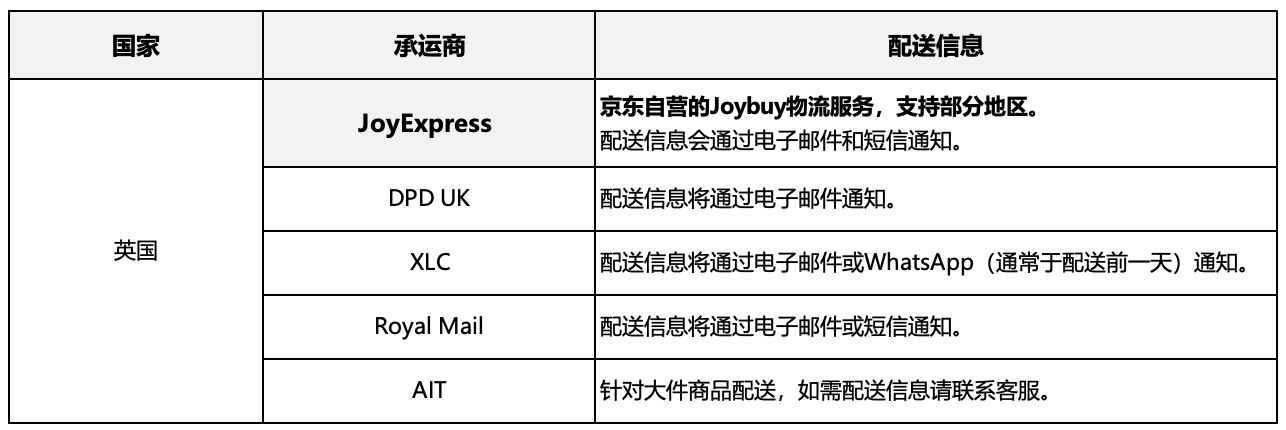 - 德国、法国合作物流:2-5个工作日,法国大件商品可能会需要7个工作日左右