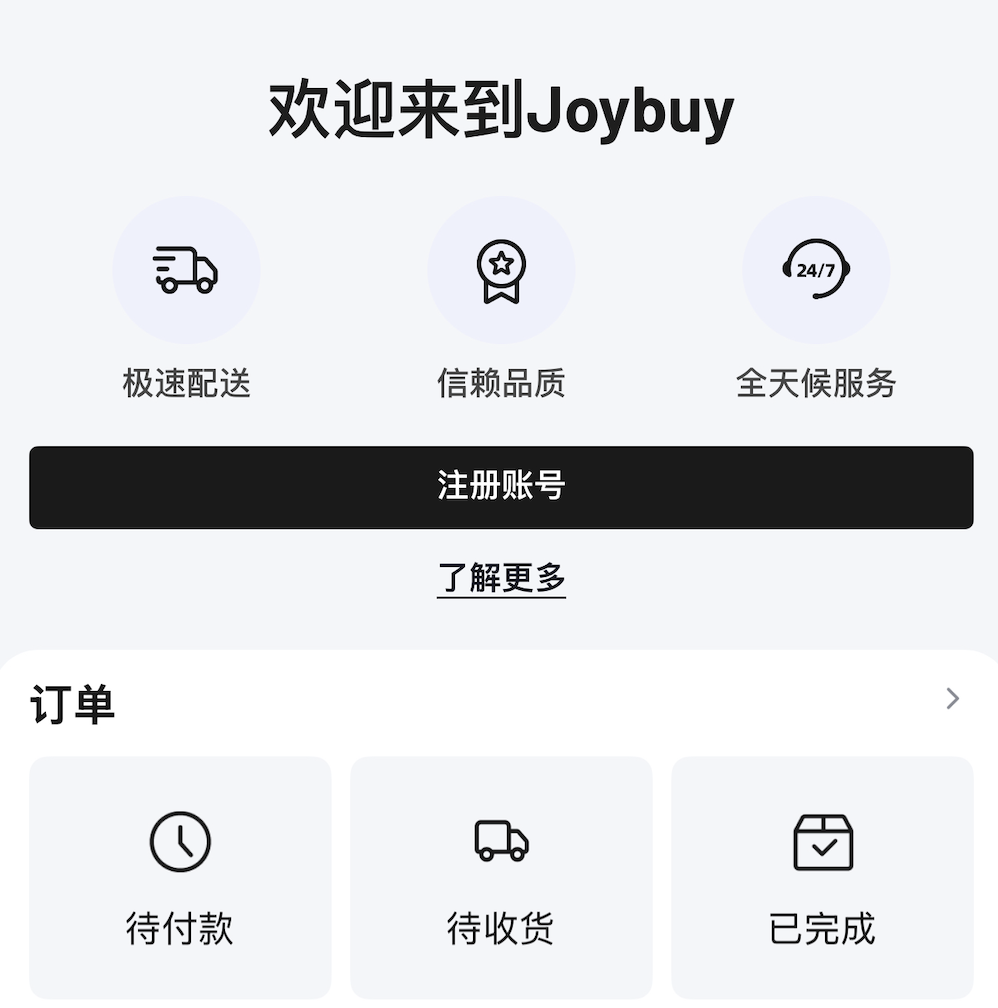 欢迎您加入Joybuy!我们支持多种注册方式,您可以通过邮箱,手机号,Google账号,Apple账号进行一键注册登录。